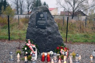 2015 wurde von Unbekannten ein alter deutscher Grabstein in den Graben vor dem früheren deutschen ev. Friedhof "abgeladen". Es könnte sich auch um ein Teilstück eines Grabsteins gehandelt haben aus der Zeit vor der Umsiedlung 1939. Leider fehlt der Name. Der Stein hat inzwischen seinen Platz wieder innerhalb des eingezäunten Friedhofgeländes gefunden.