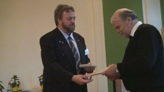 Manfrd Daum mit Kulturpreis ausgezeichnet LWW-Bundessprecher Dr. Sprungala überreicht die Urkunde