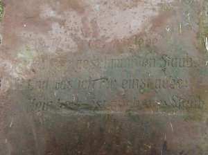 Die deutsche Inschrift ist leider stark verwittert, aber Nachforschungen ergaben diesen Text: