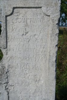 "Hier ruhet: Johann Müller, geb. den 7. Oktober 1773, angesiedelt 1784"