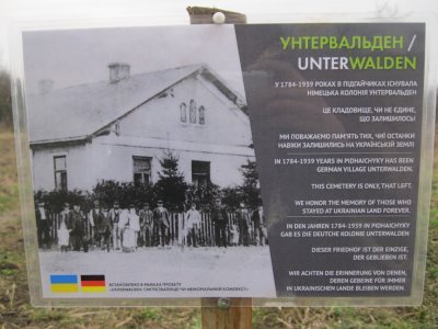 hat eine Gruppe junger, engagierter Ukrainer in Pidhaichyky (Ukraine) - im früheren Unterwalden - den überwucherten deutschen Friedhof wieder freigelegt, Informationsschilder aufgestell